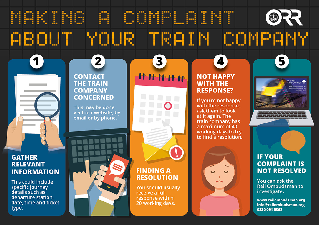 - Not happy with the response? If you're not happy with the response, ask them to look at it again. The train company has a maximum of 40 working days to try to find a resolution.